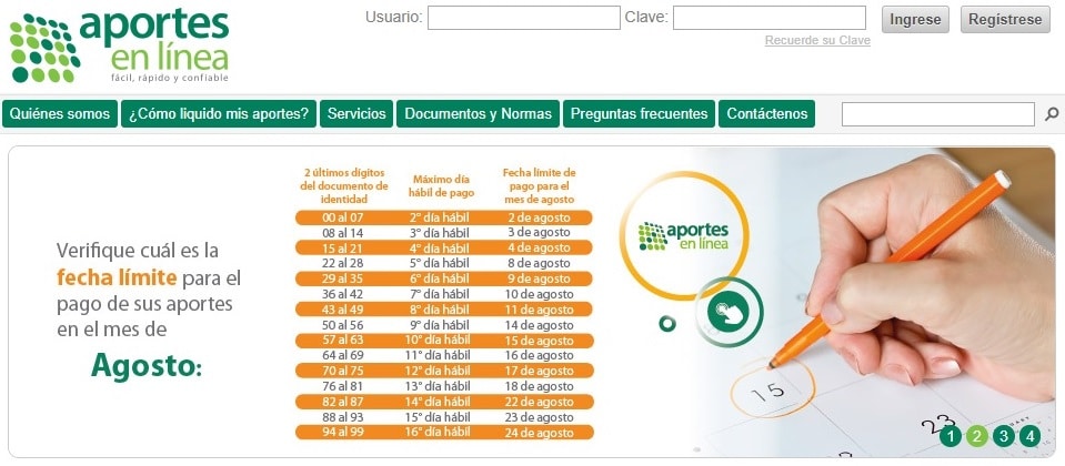 Cotiser pour la « salud » ou la « pensión » n’est pas très compliqué. Tu peux commencer le processus par téléphone ou tout faire en ligne en utilisant la page :  Aportes en línea.
