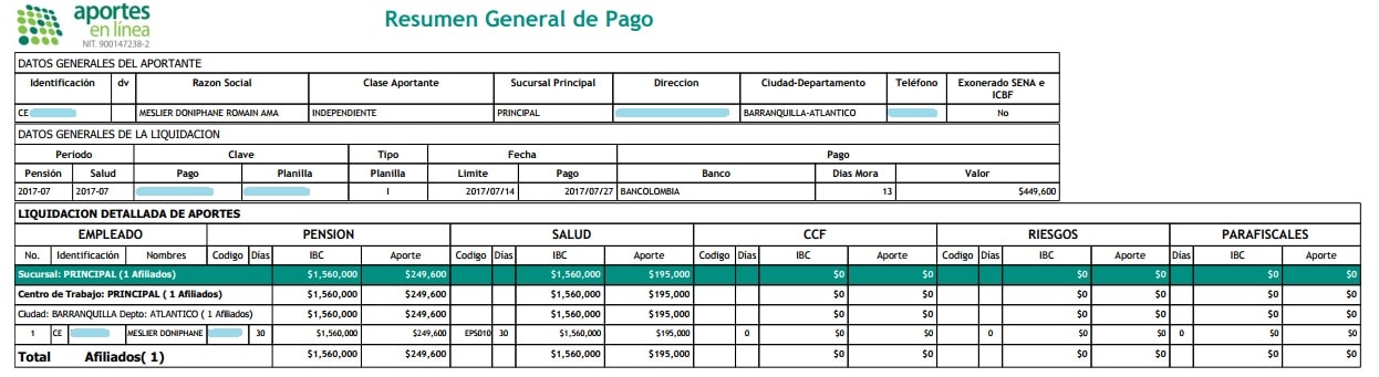 Je ne vais pas me plaindre, c’est un beau contrat et j’adore mon job (consultant en entrepreneuriat et création d’entreprise pour la Gobernación del Atlántico dans ce cas). Mais plus de 200 euros de versement sachant que je cotise déjà au travers de mon contrat de travail habituel et que je paye une mutuelle pour me protéger des risques de la vie… ça commence à être onéreux. Ils doivent être contents chez Sura (santé) et Porvenir (retraite).